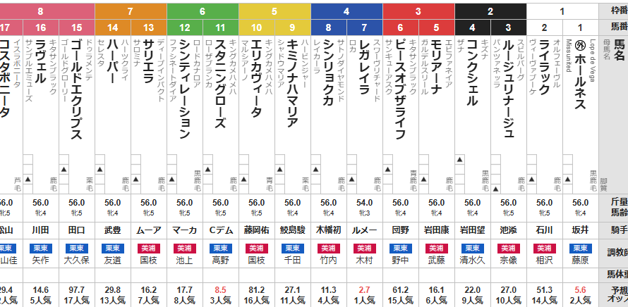 ヴィクトリアマイルでも掲示板入りするなど、このクラスで十分立ち回ってはいるが、意外と関西圏は初輸送。