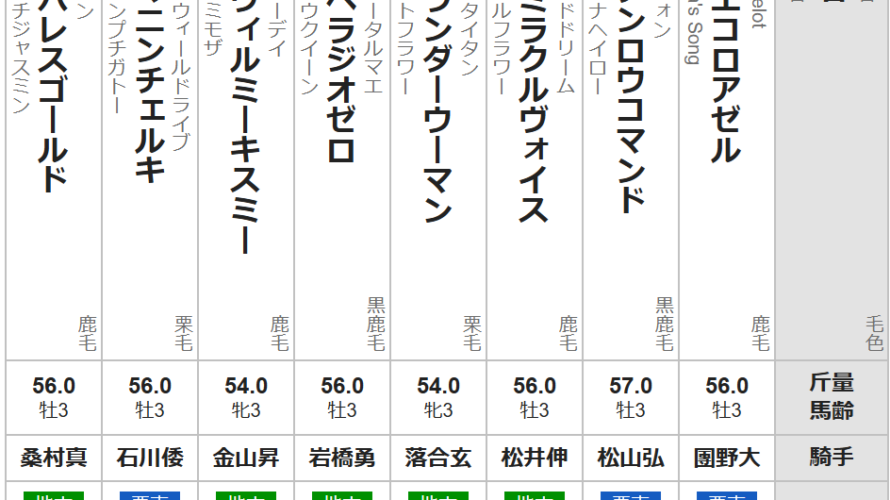 穴馬からはこの馬。この馬が無理してでも先行する可能性も。ただ勝ち筋が見えてこないものの、3着に残すという可能性はまだあるとみている。