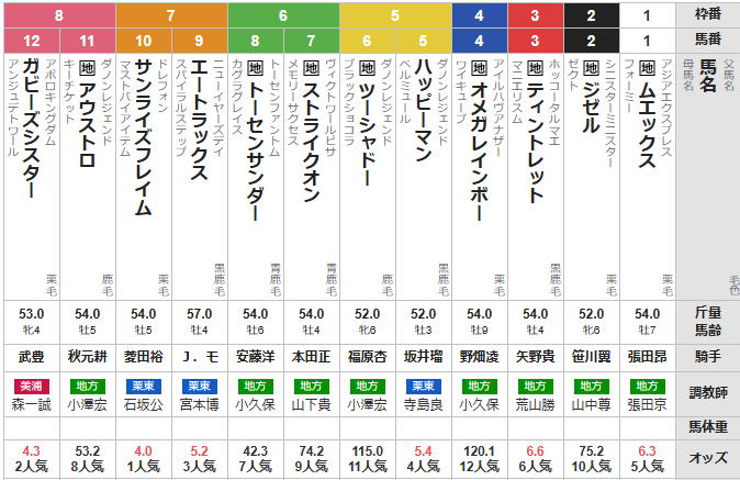 出遅れたら致命的な枠なのでスタートは無事に出たい。