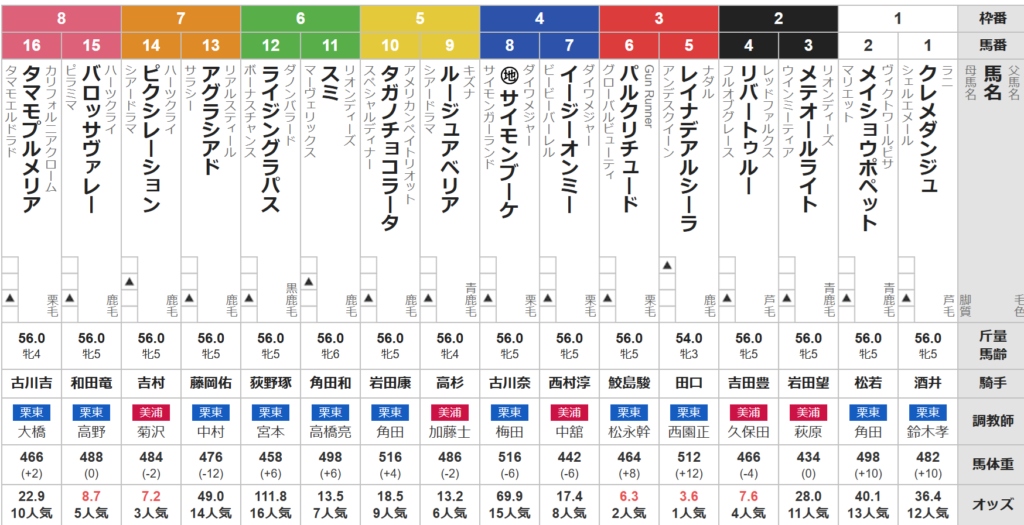 昇級戦にはなるが、前走は強い勝ち方。牝馬限定ならばチャンスはあると陣営も強気の姿勢で参戦してきた。