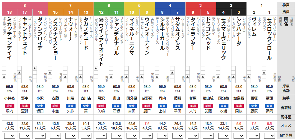 前走はなかなかの好時計。新潟千直とも好相性だ。ただ、良馬場希望なだけに、下り坂の天気は問題になってきそう。