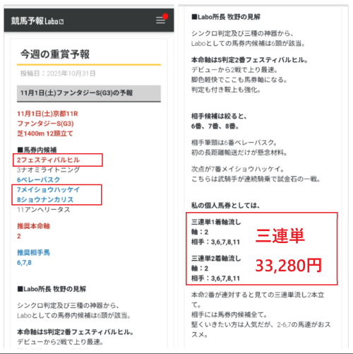 先週は天皇賞・秋を的中!