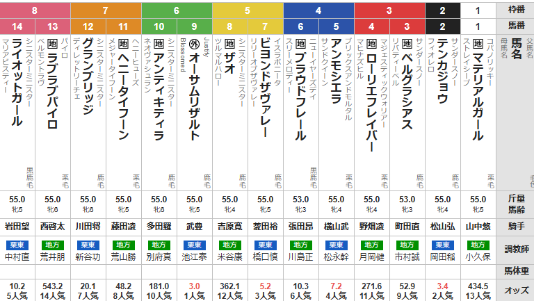 地元⑥プラウドフレールも気になりますが、3歳馬にはハードルが高いんじゃないかと思っています。