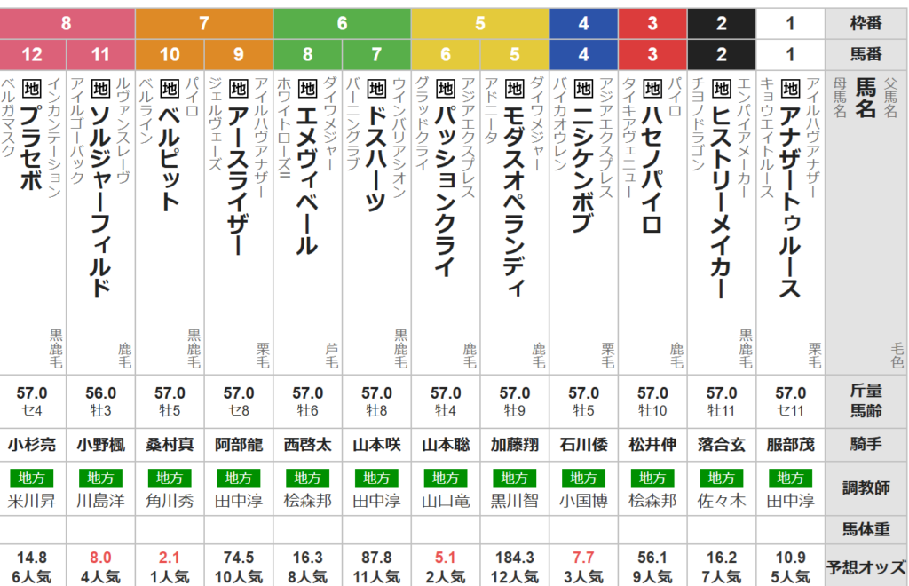 おはようございます。今回は門別の有馬記念にあたる道営記念の予想をします。