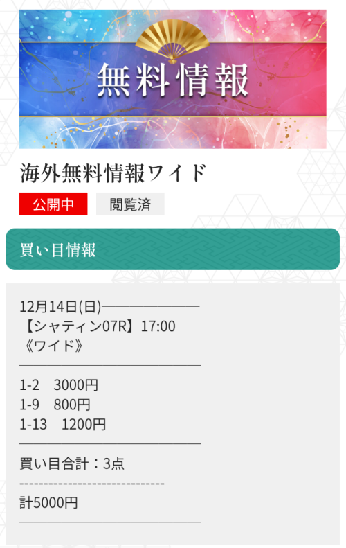 今年最後の開催で高回収率狙うならここの無料情報でしょう!