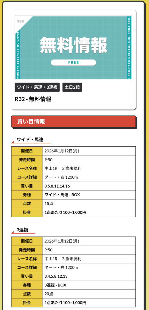 土曜から無料情報の買い目公開あるのでお見逃しなく!