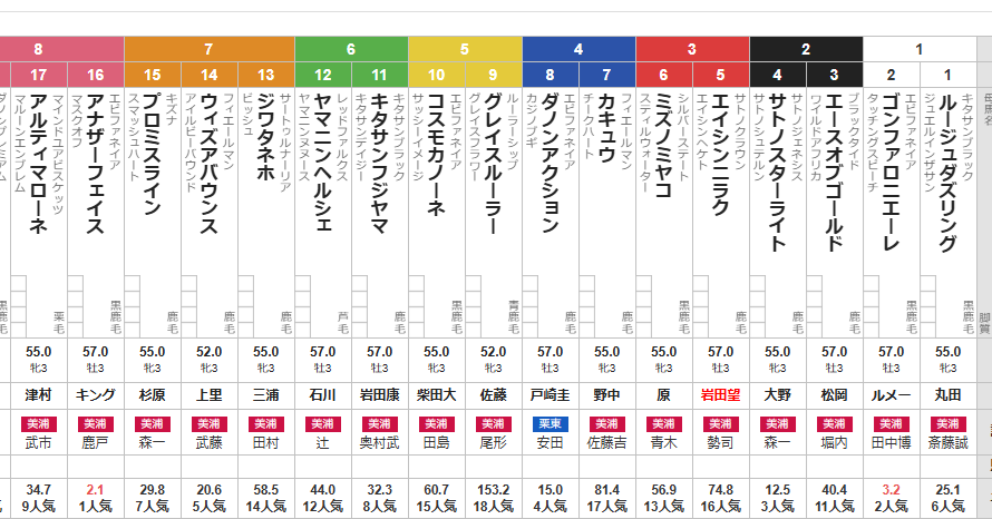 人気の一角②ゴンファロニエーレがわずかにリードしています。