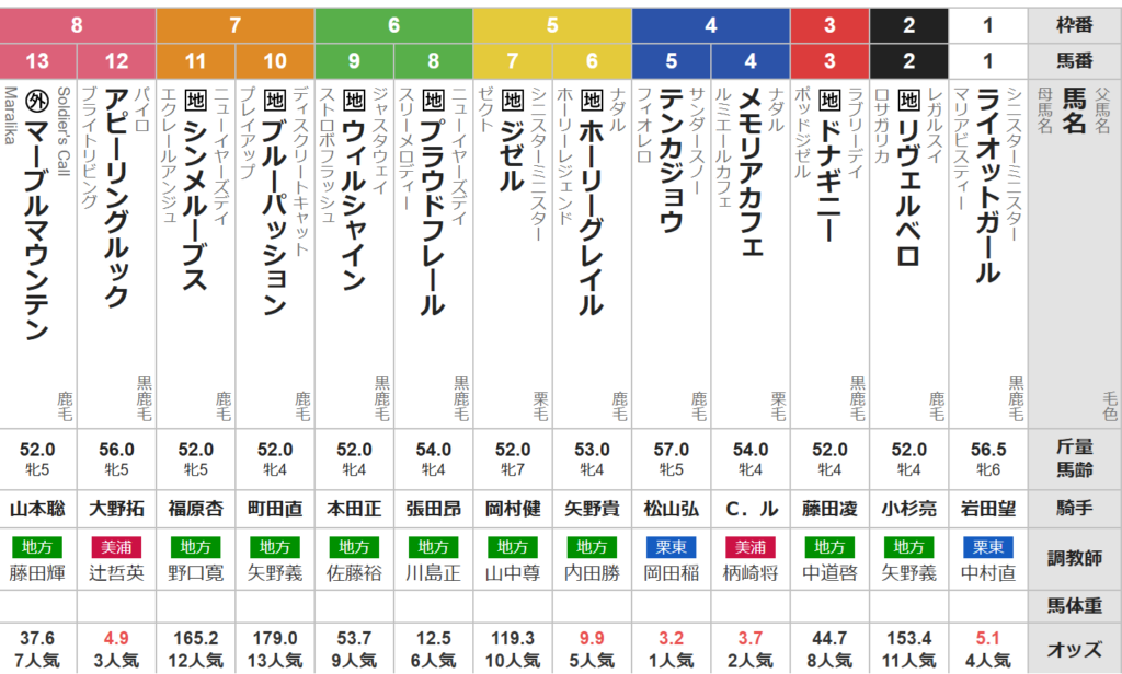 この勢いで交流重賞も行きましょうか。船橋のクイーン賞です。