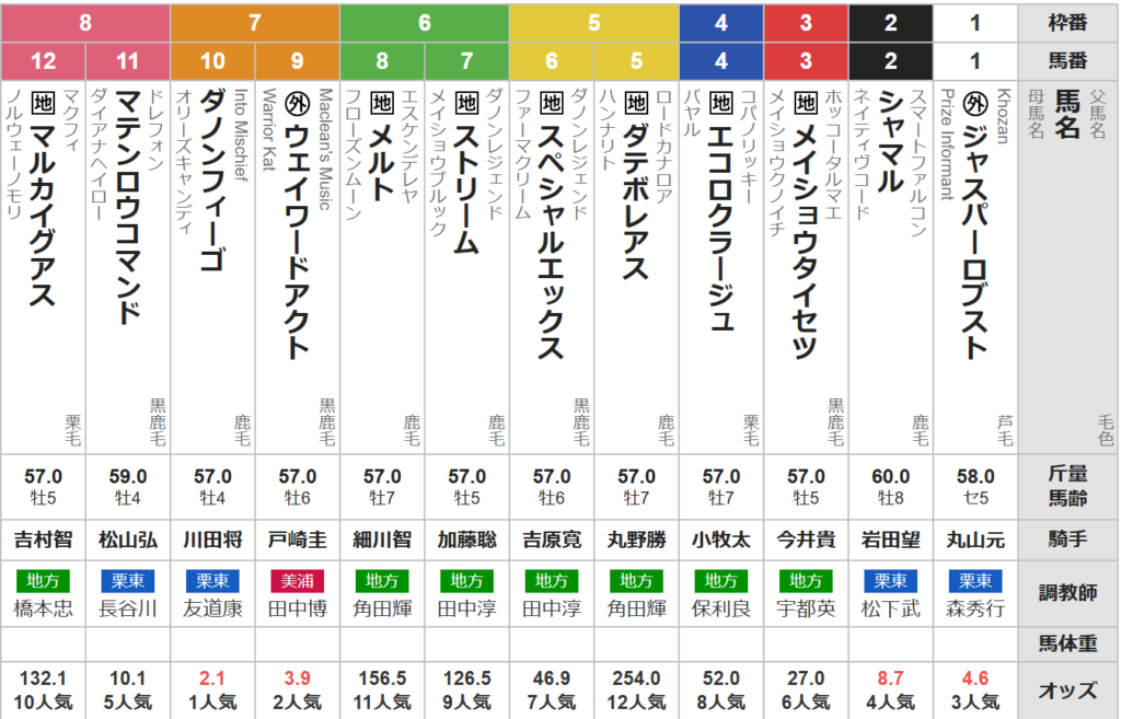 穴馬からはこの馬。佐賀ではあるが交流重賞でも上位に入るので、甘く見てはいけない。